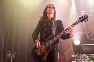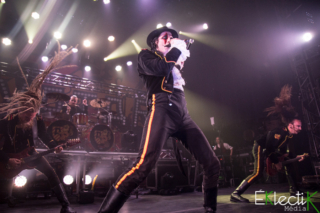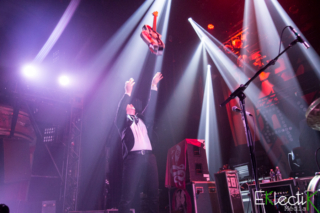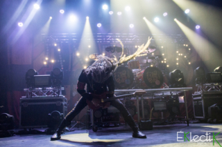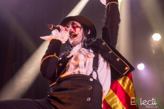 En effet, ce maître de la scène a, tout au long du spectacle, orchestré tout aussi bien ses musiciens que le public avec lequel une belle union s’est créé. En faisant crier la foule d’un bout à l’autre avec connivence et au rythme de la musique, il a su conquérir les spectateurs et, ensemble, ils ont marqué l’esprit du Corona. Au-delà du spectre vocal qui reste bluffant à chacune de ses prestations, la gestuelle et le personnage qu’incarne le leader du groupe peut nous donner l’impression étrange qu’il était tout droit sorti d’un film de Tim Burton, ce qui reste un plaisir à observer.
