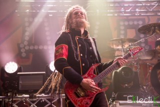 Le groupe de métal suédois Avatar était présent, hier soir, au Théâtre Corona. À peine le pied posé sur les planches que la foule était en feu pour acclamer le groupe sur la pièce Hail the Apocalypse! Le groupe a partagé les titres de leurs albums en passant par leurs plus grands succès pour y glisser leur tout dernier album Avatar Country qui a pour thème le King. Johanne Eckerström, le chanteur du groupe, a justement pris la scène pour son trône et a livré toute une performance, aussi bien d’un point de vue vocal que d’un point de vue scénique.