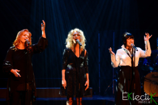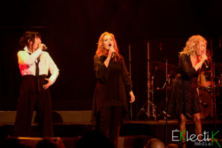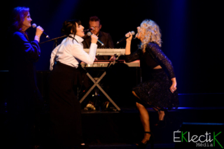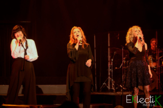 Affirmé et assumé, le trio de feu a tôt fait d’imposer sa chimie aussi tendre qu’explosive ainsi que sa grande expérience de la scène. Le public, d’abord intrigué face à ce savoureux concept concocté par Martin Leclerc, s’est laissé bercer devant l’aisance et la passion des interprètes sans s’ennuyer une seconde. Après un accueil des plus chaleureux, elles ont débuté en douceur avec la pièce inédite Les voyages écrite par Joe Bocan. Cette jolie pièce truffée de clins d’oeil à leurs méga succès respectifs a été suivie d’un medley de titres plutôt connus entonnés avec ravissement par l’audience. Cette solide entrée en matière signifiait efficacement que le metteur en scène Michel Poirier ne s’est pas contenté de performances grandioses offertes machinalement à tour de rôle.