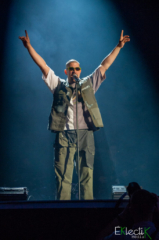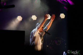 La surface de la scène n’étant jamais trop grande pour lui, Koriass a su comment utiliser l’entièreté de celle-ci pour nous livrer une magnifique performance forte en énergie et en puissance. Il a également réservé quelques surprises au public dont la venue de Imposs pour offrir la chanson Effets spéciaux.