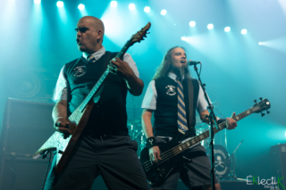 L’électricité est dans l’air. La foule est plugger sur le deux cent vingt. Comme tout bon spectacle de Métal qui se respecte, le trash domine en avant de la scène. Certaines personnes profitent aussi pour faire du body surfing. Les spectateurs font du headbanging, comme les musiciens qui jouent, pour accompagner le rythme de la musique. Les spectateurs chantent et reconnaissent les chansons à la première note. Ils participent à la théâtralité proposée par les artistes sur scène. La signature de ce spectacle dans toute sa mise en scène est un pur délice pour tout ceux qui adore l’art de Mononc’Serge et Anonymus.