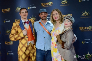 Le 30 mai dernier avait lieu la première médiatique du spectacle Kurios-Cabinet des curiosités du Cirque du Soleil, qui sera présenté jusqu’à 25 août sous le Grand chapiteau situé dans le Vieux-Port de Montréal. Pour l’occasion, un long tapis rouge était dressé à l’entrée. Plusieurs personnalités publiques y ont défilé avec famille et amis avant de pénétrer dans l’accès réservé aux détenteurs de billets.