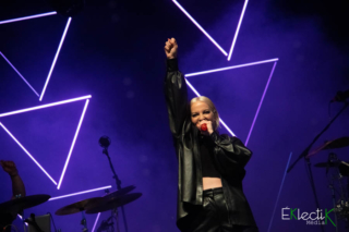 Hier soir, la scène Loto-Québec du FestiVoix de Trois-Rivières bourdonnait de cris, de pieds sautant avec vigueur sur le plancher en métal des zones d’écoute…et même d’un sifflet! La raison de cet enthousiasme ? La venue de Marie-Mai pour son tout premier spectacle devant une foule de plus de 250 personnes depuis une année et demi. Pour cette occasion, la chanteuse a modifié le spectacle de sa tournée Elle et moi pour qu’il corresponde aux contraintes d’un festival en temps de pandémie. Cela dit, les mesures de distanciation sociale n’ont pas empêché la foule de se sentir comme à un des nombreux spectacles de Marie-Mai dans un Centre Bell rempli, car la chanteuse a exactement apporté la même énergie et la même frénésie.