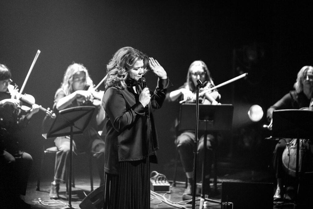 Avec l’aide de la technologie, Marina Orsini a pu nous offrir deux merveilleux duos, dont celui avec Richard Séguin pour la Chambre orange, écrite par Louise Marois, un petit bijou, presque aussi brillant que l’interprète. Le deuxième duo était avec nul autre que son ami Manuel Tadros sur le titre Ce n’est rien que ce dernier lui a écrite. S’en est suivie une autre chanson que Manuel Tadros lui a composée et qui s’appelle Fallait s’y attendre.