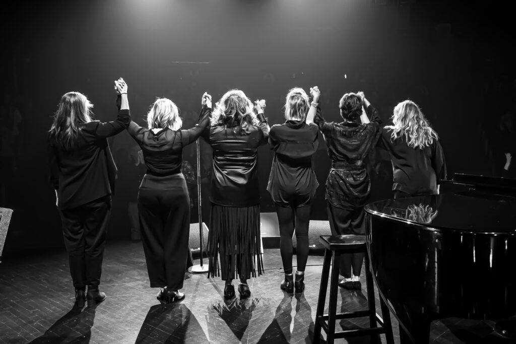 Dès notre arrivée dans l’Amphithéâtre Le Gésu, nous pouvions apercevoir sur le décor de ce spectacle tant attendu. La scène était habillée d’un piano, de chaises, de lutrins pour les musiciennes, de bouquet de fleurs et d’un élégant fauteuil. La photo en noir et blanc de Marina se promenant dans un bois se trouvait également au fond de la scène. Une belle prémisse de ce qui nous attendait.
