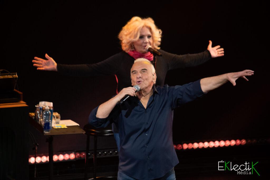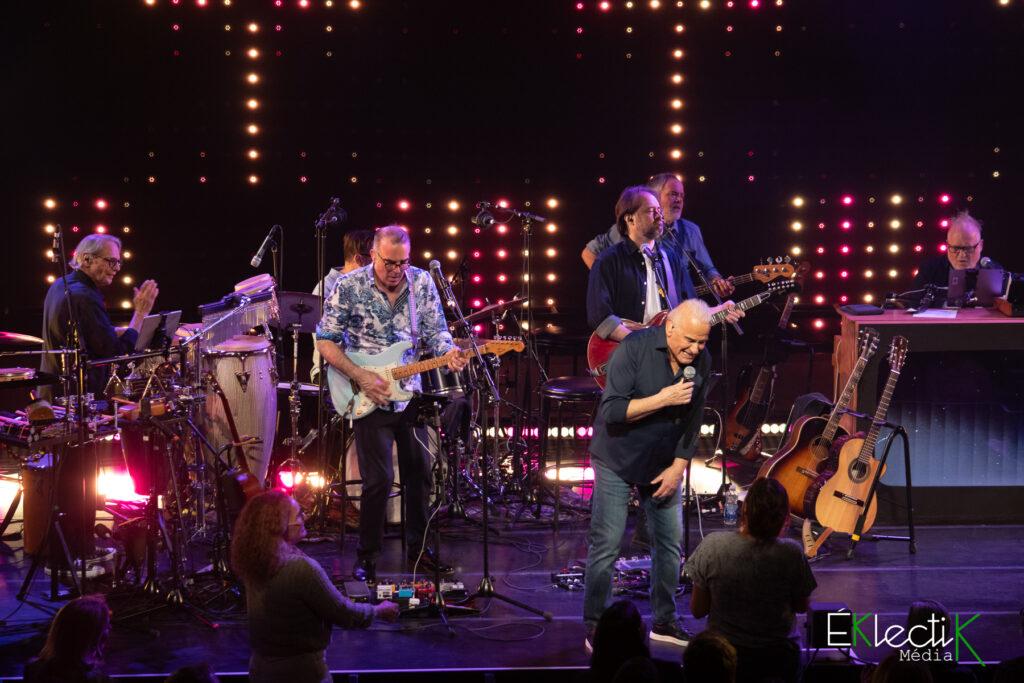 Selon les informations qu’il nous a fournies, l’IA n’est pas à l’affiche de ce spectacle, et ce, au grand plaisir de l’assistance. Michel Fugain a ouvert le spectacle avec la pièce Chante comme si tu devais mourir demain. La foule s’est enflammée et l’a accompagné dans ce premier tour de chant en marquant le temps des mains. L’artiste, toujours aussi passionné, a ensuite ouvert le dialogue avec la foule pour raconter la ligne de temps de son impressionnante carrière. Ses interventions entre les chansons nous permettaient d’étendre nos connaissances sur ses chansons, sur le Big Bazar qu’il a dirigé pendant cinq ans ainsi que sur sa vie à lui.