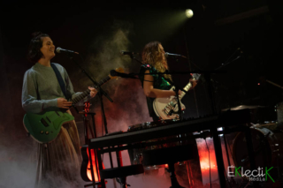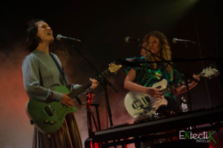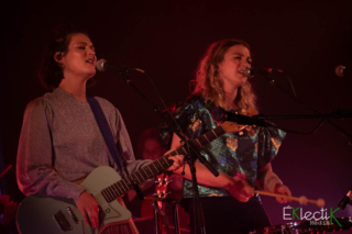 Séduisant d’emblée les fans en débutant avec deux succès de leur premier album Le poids des confettis, Par le chignon du cou et Cul-de-sac, les sœurs ont tôt fait d’instaurer une ambiance chaleureuse teintée de simplicité et de lumière. Ayant comme seul décor une immense toile blanche projetant des archives familiales prises par leur père lors de leur enfance dans leur Gaspésie natale, les autrices-compositrices-interprètes ont rapidement insufflé à la foule la sensation d’être en compagnie de complices copines que même le temps et la distance ne parviennent à tuer.