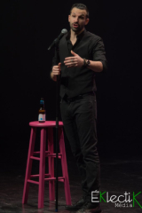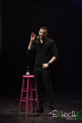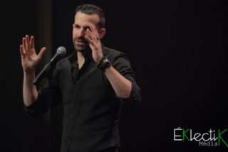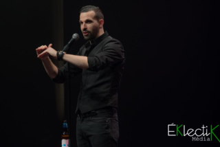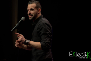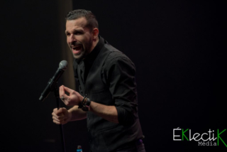 En fin de spectacle, il a complètement charmé le public avec ses chansons grivoises en s’accompagnant à la guitare « sèche comme Denise Bombardier ». Avec un humour virulent qui provient des fonds de bars, force est d’admettre qu’on a un plaisir coupable à savourer des blagues pour adultes avertis et qui ne demandent pas beaucoup de réflexion. Sur ce point, il a gagné beaucoup de points, dommage qu’il ait mis ce numéro chanté seulement à la toute fin.