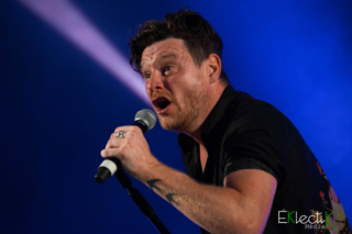 Pendant ce temps, Yann Perreau se cachait sournoisement à l’arrière des gens se trouvant dans la section debout afin de prolonger le mystère quant à sa performance éclatée. Dansant avec des spectatrices en entonnant Dance me to the end of love de Leonard Cohen, il a ensuite pris d’assaut la scène dans la pénombre quasi-totale pour entamer son succès Baby Boom. Celui qui, en 24 ans de carrière, en était à son premier passage à l’International a tôt fait de mentionner qu’il était en pleine forme. Le public l’a rapidement constaté avec bonheur. Yann, visiblement heureux de participer à un événement familial aussi bien rodé,  n’a pas voilé son exubérance. Il a plusieurs fois parcouru le tour de la scène en courant et faisant des grimaces. Il a présenté ses musiciens avec une voix grave comme s’il était un animateur de cirque. Il a même escaladé avec une impressionnante insouciance les échelles métalliques ornant les côtés de la scène!