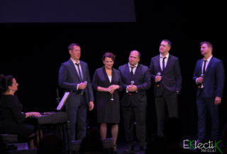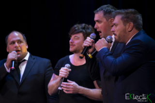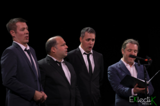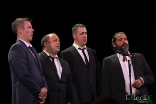 Le quatuor Quartom, composé du ténor Gaétan Sauvageau, des barytons Julien Patenaude et Benoit Le Blanc ainsi que du baryton-basse Philippe Martel, a profité du dévoilement du quatrième album, Renaissance (chants sacrés), hier au Théâtre Paradoxe, pour célébrer son dixième anniversaire. Le concert, agrémenté d’un encan silencieux, a enchanté les nombreux spectateurs présents grâce à l’impressionnante puissance vocale des quatre hommes et à la générosité des invités : Catherine Major, Yann Perreau et Marie-Élaine Thibert.