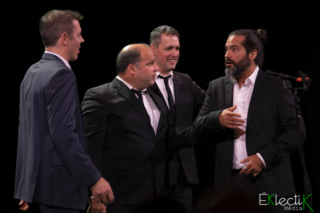 Ce lancement d’album atypique a aussi été synonyme de départ. Depuis un certain temps, Gaétan Sauvageau a quitté la formation pour se consacrer au duo classique contemporain Incanto lancé avec sa femme Sahara Sloan. Il a pris le temps d’expliquer, grâce à une sympathique vidéo, les raisons qui ont mené à cette décision. Ce geste rempli de générosité et de solidarité de la part des membres restants de Quartom était très beau à voir. Malgré la tristesse et la nostalgie, les hommes, qui considèrent ce départ plutôt comme un au revoir qu’un adieu, ont continué de faire les fanfarons en organisant de fausses auditions pour trouver le successeur de Gaétan. Cette amusante manière de présenter le nouveau membre, Antonio Figueroa, a frappé dans le mile.
