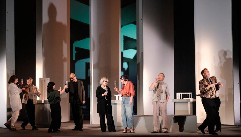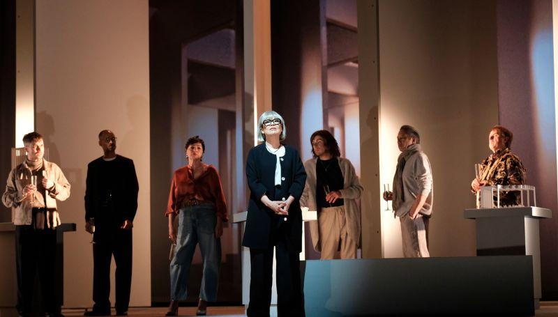 Anne Dorval est une stararchitecte souveraine qui règne sans partage sur la pièce. La physicalité de son jeu épouse chaque aspérité de cette femme d’affaires, dans sa gestuelle comme ses silences. Elle façonne en cela la stature de son personnage, croisement entre Miranda Priestyl (Le diable s’habille en Prada) et Edna Mode (Les Incroyables). Ces deux figures inspirées d’ailleurs d’Anna Wintour, rédactrice emblématique de Vogue.