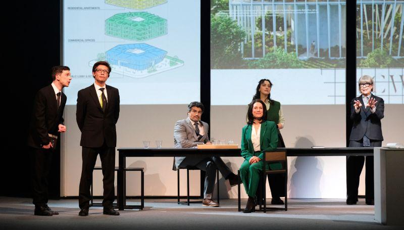 Sur scène, Céline Wachowski est de retour à Montréal pour édifier le siège social d’une multinationale. En quarante ans de carrière, il s’agit d’un premier mandat ambitieux dans sa ville natale. Les Ateliers C/W sont donc fiers d’être associés au projet.