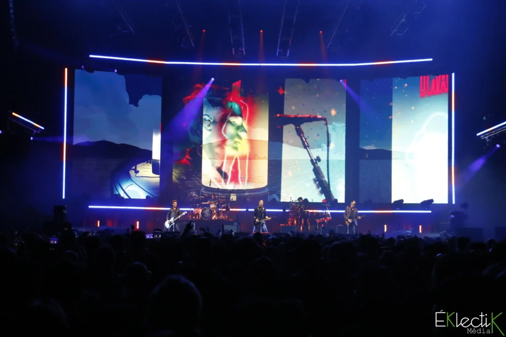 Pour annoncer l’arrivée du groupe punk, un compte à rebours s’est affiché sur l’écran principal. La foule complètement déchaînée criait chaque chiffre à l’unisson. Dès les premières notes, le Centre Bell a explosé d’enthousiasme et de cris.