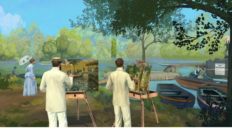 L’exposition immersive Un soir avec les impressionnistes est une véritable machine à voyager dans le temps. Équipé d’un casque de réalité virtuelle, on revit la naissance de ce courant artistique. Rose, modèle et autrice en herbe, nous guide à travers les rues pavées de la capitale française. C’est l’occasion de replonger dans la sublime architecture de la ville et son effervescence d’antan. On oublie d’ailleurs assez rapidement le réel pour plonger dans ce décor 100% numérique. Tout est recréé avec minutie dont la façade du somptueux Opéra Garnier ou l’atelier Nadar dans lequel nous attend une foule d’artistes.