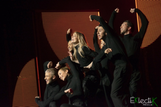 «Vivons ensemble le plaisir d’être ensemble», a lancé la principale intéressée avant de débuter en force avec la touchante What about us de P!nk de laquelle elle a reproduit les notes hautes à la perfection. Appuyée par une éclatante mise en scène signée Josée Fortier, l’enfilade de plus de 80 chansons qui s’en est suivie s’est effectivement avérée fort rassembleuse de par son déstabilisant registre allant de Jeunesse d’aujourd’hui à Hubert Lenoir. Ce désir d’offrir une soirée généreuse plaisant à un vaste public s’est fait ressentir tout au long de ce concert de plus de 90 minutes divisé en treize tableaux tous aussi pertinents les uns que les autres. Une remarquable fluidité existait entre le nombre imposant de chansons, les moments festifs et doux, les danseurs, les jeux de lumière éblouissants et les sublimes projections. Devant une telle invitation, les spectateurs contenaient difficilement leur folle envie de danser et chanter comme s’il n’y avait pas de lendemain.