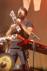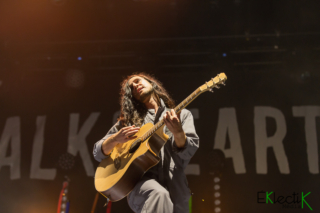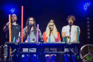 C’est une foule à perte de vue qui était réunie à la Place des festivals pour le Festival de Jazz de Montréal le 4 juillet au soir dernier. Celle-ci attendait patiemment la venue du groupe canadien Walk off the Earth qui connait une montée en popularité fulgurante depuis les dernières années. Le groupe, originaire de Burlington en Ontario, est formé de cinq artistes aux talents multiples : Gianni Luminati, Sarah Blackwood (bien enceinte, mais énergique!), Ryan Marshall, Joel Cassady et Mike Taylor affectueusement nommé « Beard guy ». La formation est entre autres reconnue pour ses reprises de chansons populaires adaptées de façon originale. D’ailleurs, leur version de Shape of you d’Ed Sheeran a fait un malheur sur le net et c’est avec cette pièce que le groupe a lancé la soirée. Ce fut un excellent choix, puisque le public chantait à tue-tête.